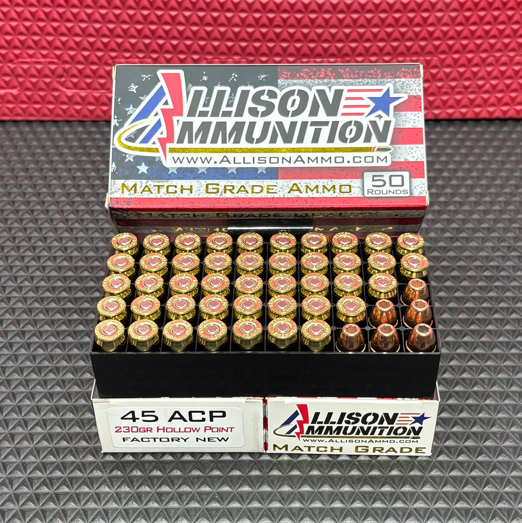 Allison ammo is reloaded according to SAAMI specifications using a commercial progressive press with the highest quality products and components available. All completed ammunition goes through rigorous visual inspection as well as SAAMI checking blocks to ensure the best quality product.